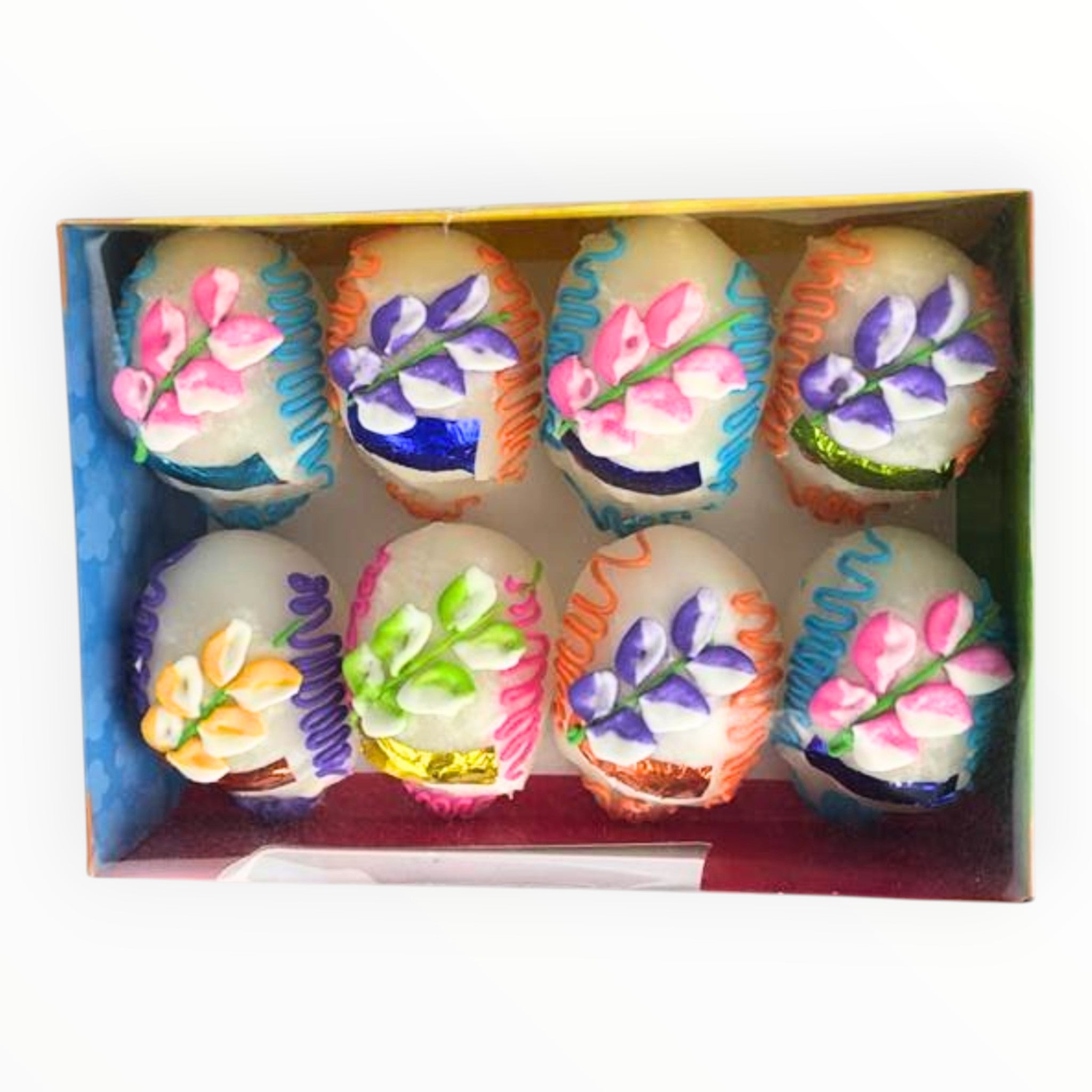 Calaveritas de azúcar tamaño #5, elaboradas de forma tradicional y listas para decorar altares u ofrecer como detalle típico de Día de Muertos. El paquete incluye 8 piezas, cada una con medidas aproximadas de 5.5 cm de alto, 5.5 cm de ancho y 7.8 cm de largo.