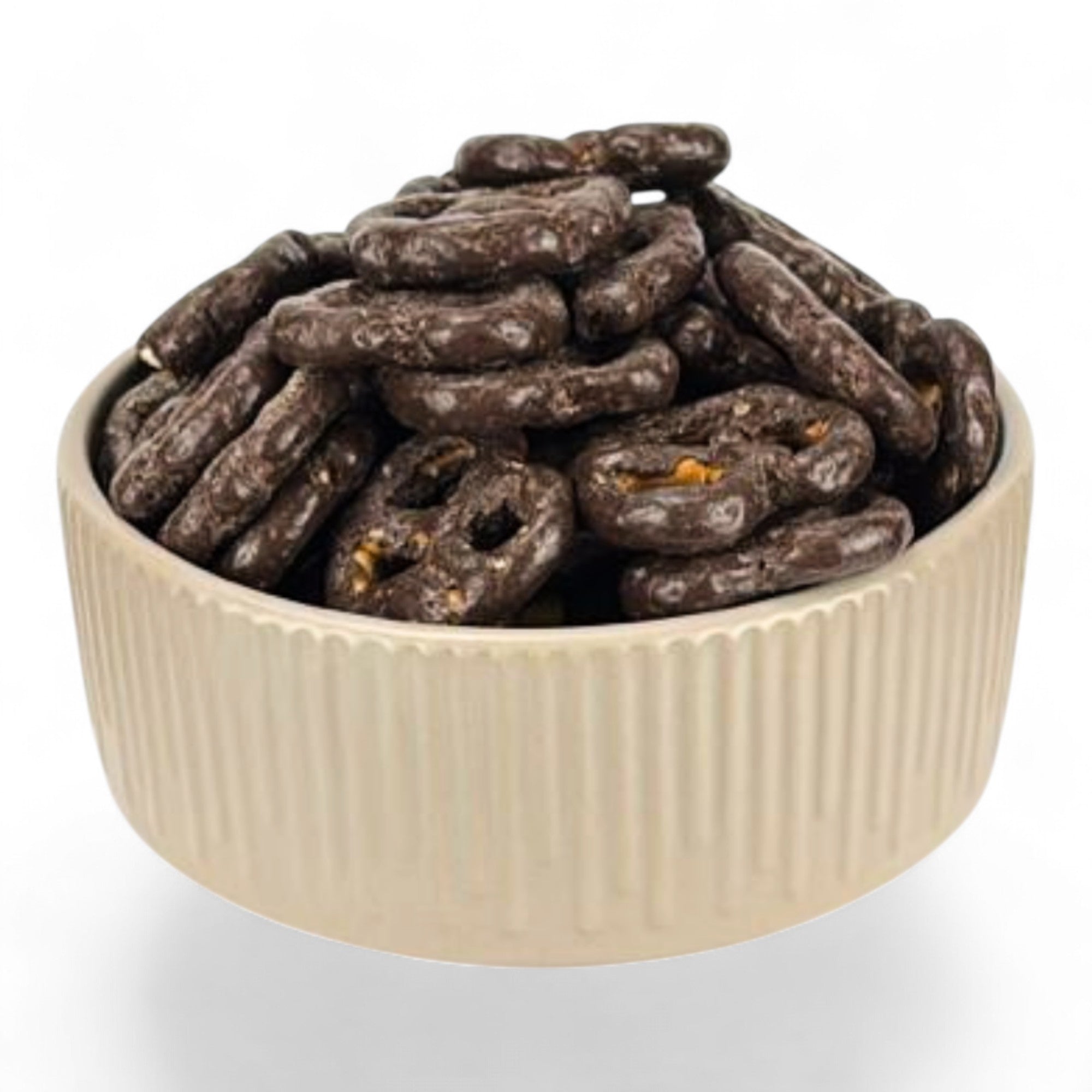 Crujientes pretzels cubiertos con chocolate oscuro, combinando lo salado y lo dulce en un bocado irresistible. Producto gourmet con excelente vida en anaquel, ideal para tiendas, dulcerías o reventa. Presentación práctica a granel con 5kg, de alta rotación y gran margen para negocios.